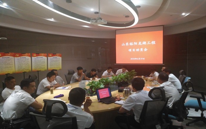 2018年6月19日,集团公司组织召开山东裕阳龙湖工程项目动员大会,会议由集团副总经理周璜主持,总经理王越及集团公司各部门负责人和山东裕阳龙湖项目管理人员参加了此次会议。