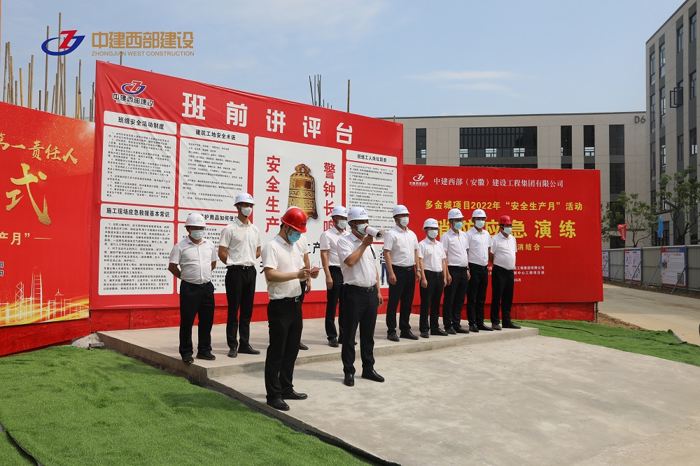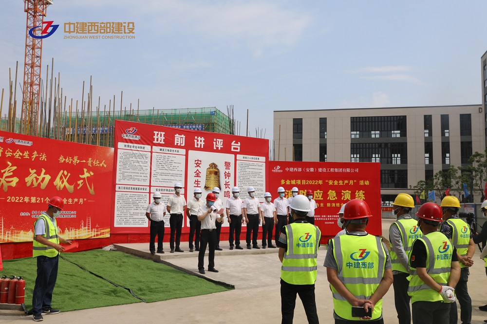 今年6月是全国第21个“安全生产月”,今年的主题是“遵守安全生产法,当好第一责任人”。为了认真贯彻国家有关部门及行业主管部门安全生产工作指示精神,大力推进中建西部建设集团各项安全生产工作的落实,提高全员安全生产意识,安全生产技能。2022年6月10日在多金城国际企业总部中心工程项目现场隆重举行中建西部建设集团2022年“安全生产月”活动启动仪式。同时,组织实施多金城国际企业总部中心项目消防应急演练。