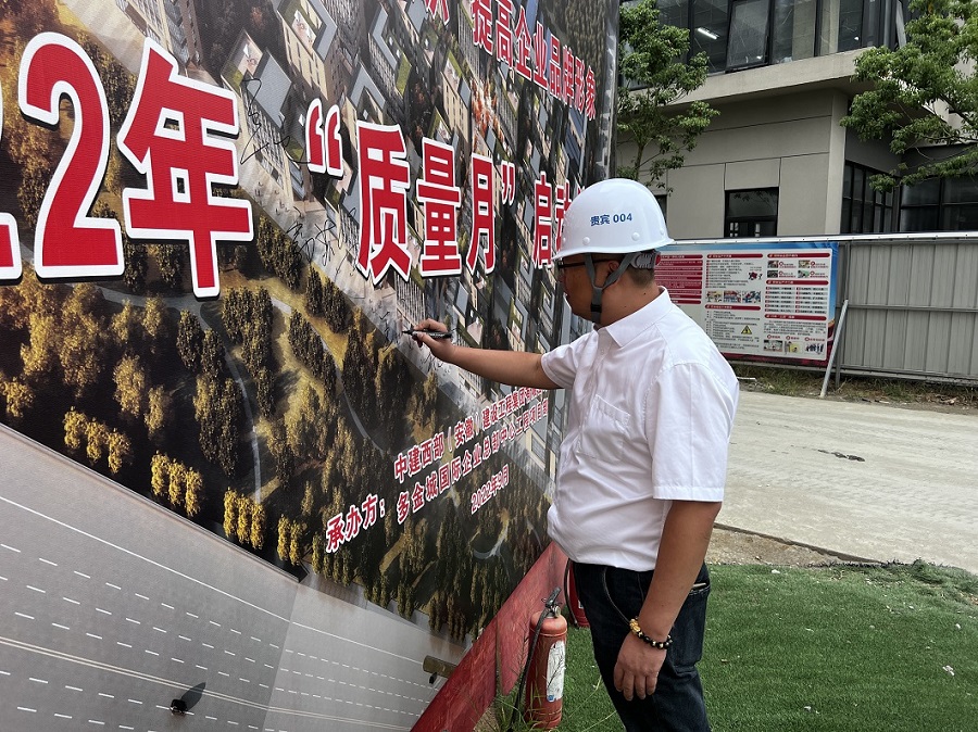 仪式结束后,中建西部建设集团相关领导、多金城国际企业总部中心负责人还进行了“质量月”签名活动,并集中观看了质量事故警示教育视频,并就如何治理质量通病、制定质量通病预防措施及杜绝质量事故发生等问题进行了现场大排查活动。