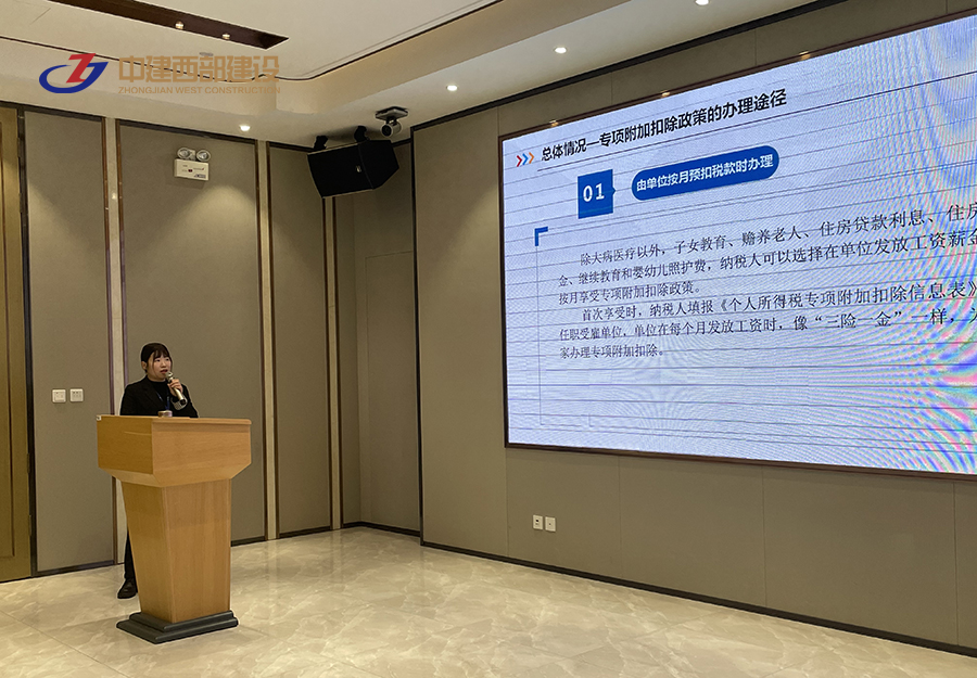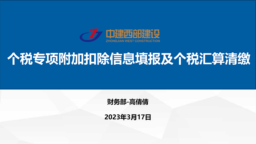 个人应纳多少所得税?哪些专项附加扣除?……为使中建西部建设集团全体员工更好的了解个税专项附加扣除及汇算清缴政策,让全体员工充分享受到减税红利,按时、准确完成年度个税汇算清缴工作。2023年3月17日下午,中建西部建设集团开展了《个税专项附加扣除信息填报及个税汇算清缴》培训。此次培训讲座由财务部经理高倩倩讲解。