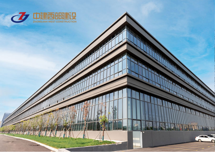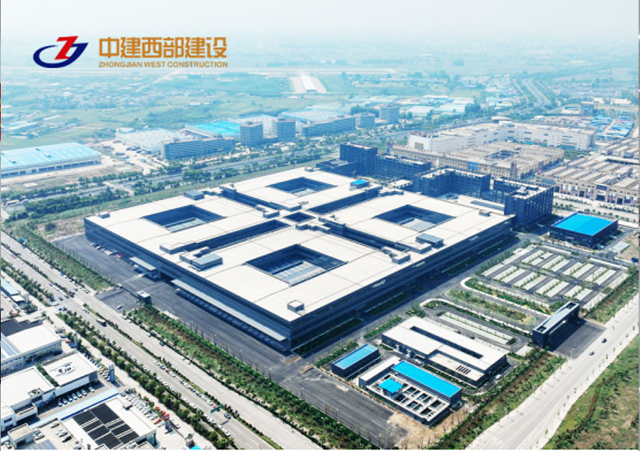 项目主要单体为四栋生产厂房,每栋厂房建筑面积约5.4万平方,单层面积1.5至1.9万平方米。首层层高8米,厂房轴跨12米,连廊部分跨度最大达到24米,约4.5万平方米属于危大工程高支模类型,施工难度大,对竖向构件的垂直度要求标准较高。在施工过程中,中建西部项目管理团队精心策划、科学组织,充分发扬中建西部人敢打必胜的工作作风,以昂扬向上的斗志和拼搏进取的精神全力冲刺攻坚,相继克服疫情反复以及施工过程中众多难题,顺利完成了项目履约。