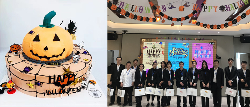 本次生日会精心准备了南瓜造型蛋糕,与万圣节主题相得益彰,由生日员工共同点燃蜡烛,许下美好愿望,同时,还为他们准备了精美的生日礼物。
